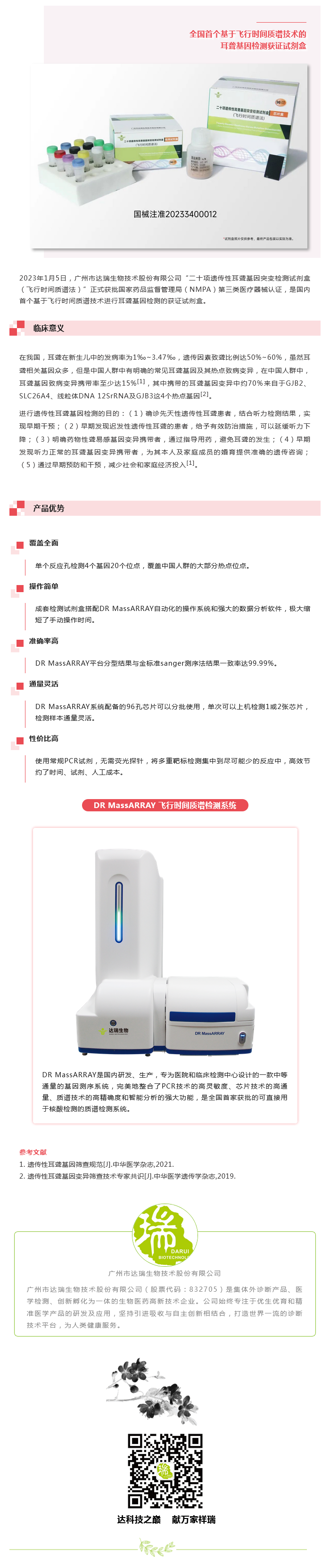 全國首個基于質(zhì)譜技術(shù)的耳聾基因檢測試劑盒正式獲批!